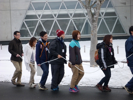 4月1日に北リアス線陸中野田駅から田野畑駅間の運行が再開します。その再開を喜び、また震災復興支援への全国、全世界への方々への感謝の気持ちを表すため、「笑顔をつなぐ、ずっと・・・」をテーマに再開PR動画の撮影会が行われました。私たちはその撮影会に参加し、三陸鉄道の現状などを学びました。