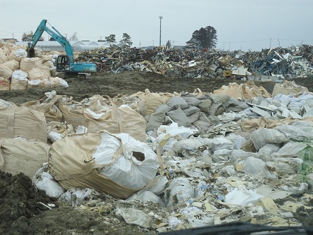 瓦礫置場。ここでは種類別にごみが分別されています。
