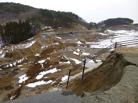 今回の震災で決壊した須賀川市ある藤沼ダムに連れていっていただきました。3月11日に発生した東日本大震災の強い揺れを受け、地震直後にダムは決壊し家屋や田畑を流失しました。下流の長沼地区と滝地区では死者7人、行方不明者1人の8人が犠牲になりました。そして、全壊した家屋は19棟、床上浸水家屋55棟という被害を出しました。