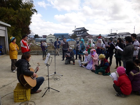 11日、農家民宿のオープン日では「民宿オープン内覧会」として、同じ農家仲間の森農園さんによるギター演奏や地元の方との餅つき大会、民宿でのカルタ大会などが催され、阿部農縁に関わる様々な世代、繋がりの方達とのふれあいがありました。皆さんとても楽しんでおられ、非常に盛り上がりました。