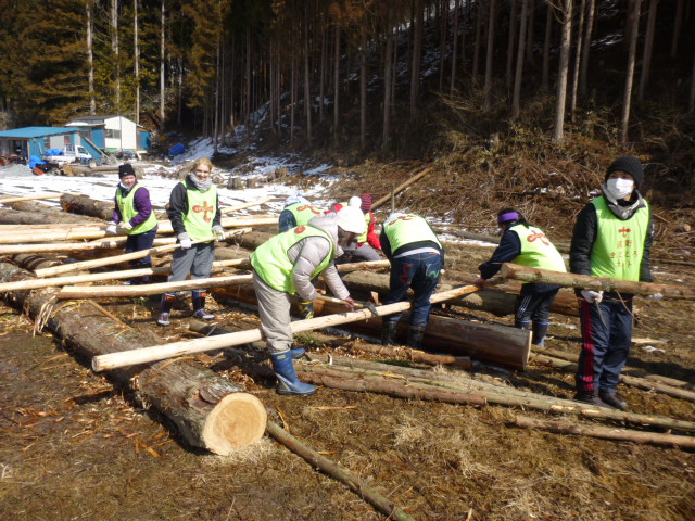 木の皮を剥ぐのが初めてということもあり、はじめはなかなかうまく剥がせませんでした。でもコツを掴んでくるとスイスイと剥げるようになり、作業が楽しくなっていきました。木の中には皮が剥ぎにくいものがあったり、木の節を取り除かなければならないものがあったので苦労しました。作業をしていくうちに少しずつ他のボランティアの人と話すようになり、いろんな話をしたり聞けたり出来ました。ボランティアの人達はみなさん出身地はバラバラ。滋賀、札幌、東京、千葉、ポルトガル、フランス、アイルランド・・・などなど。年齢や職業もバラバラ。学生、会社員、定年退職された方、元外交官のパワフルおばあちゃん・・・などなど。本当に老若男女いろんな人がいて本当にびっくりしました。もしこのボランティアに参加してなかったらこんな繋がりや接点が無かったのだと思うとボランティアと言うのはすごいものだなと思いました。