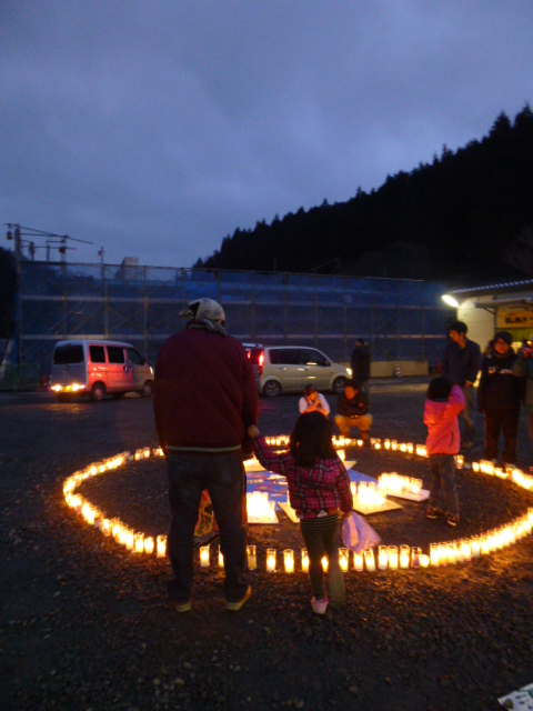 それからは、キャンドルの1つ1つにも想いを込めて手渡しをするようになった私。空が暗くなると共に人も増え、キャンドルの周りは地元の人と釜石の外からやってきた人とが交じり合う、語らいの場になった。